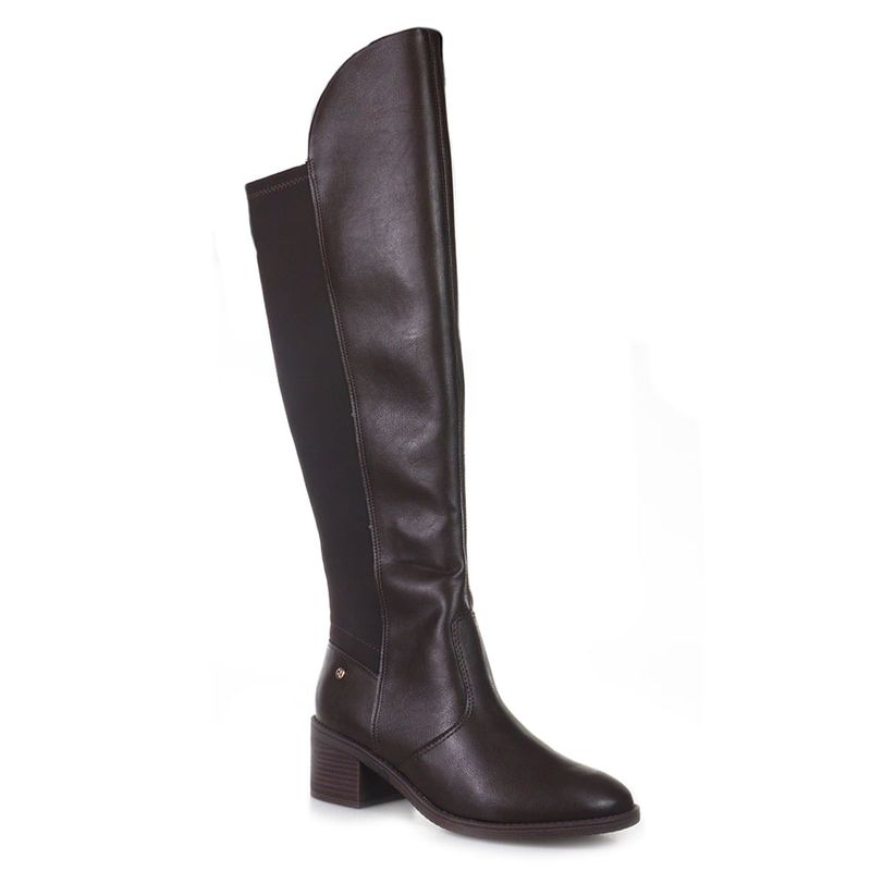 | Cabedal | Sintético com acabamento liso e cano longo (over the knee) |