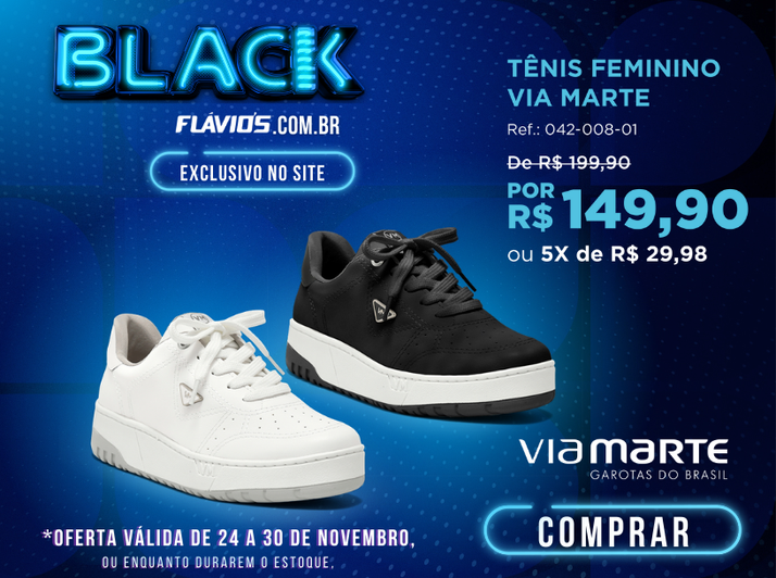 *Válido apenas para produtos vendidos e entregues pela Flávio's Calçados *Cupom válido somente para 1ª compra e para produtos não promocionais.