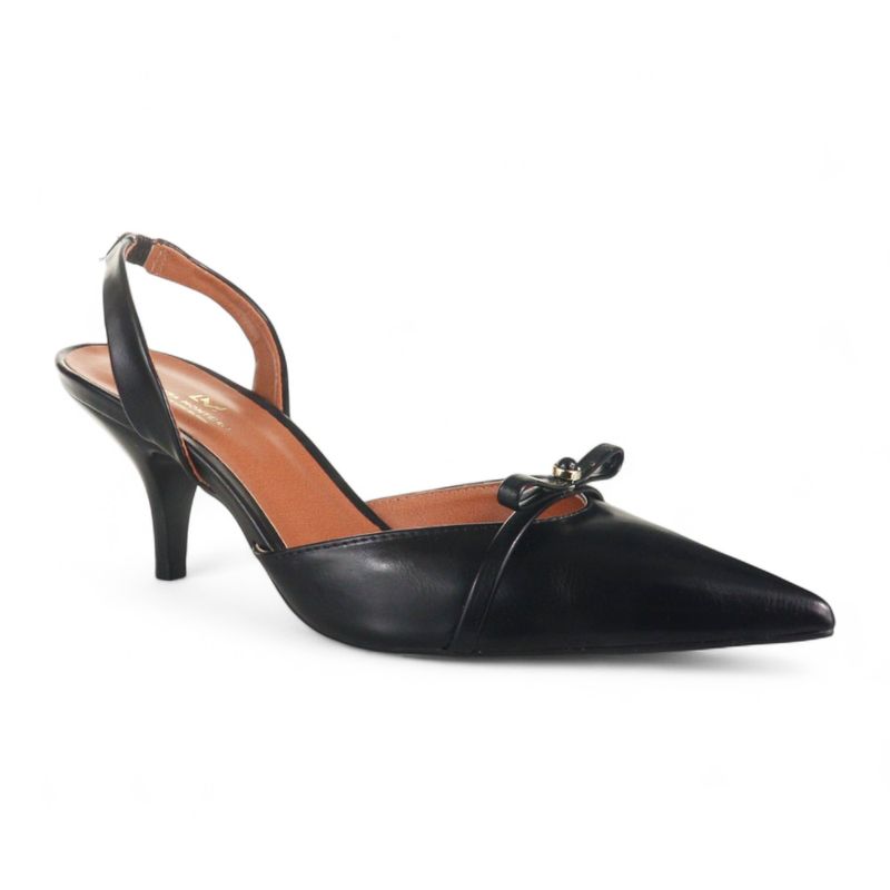 CabedalSintético com bico fino e tira no calcanhar