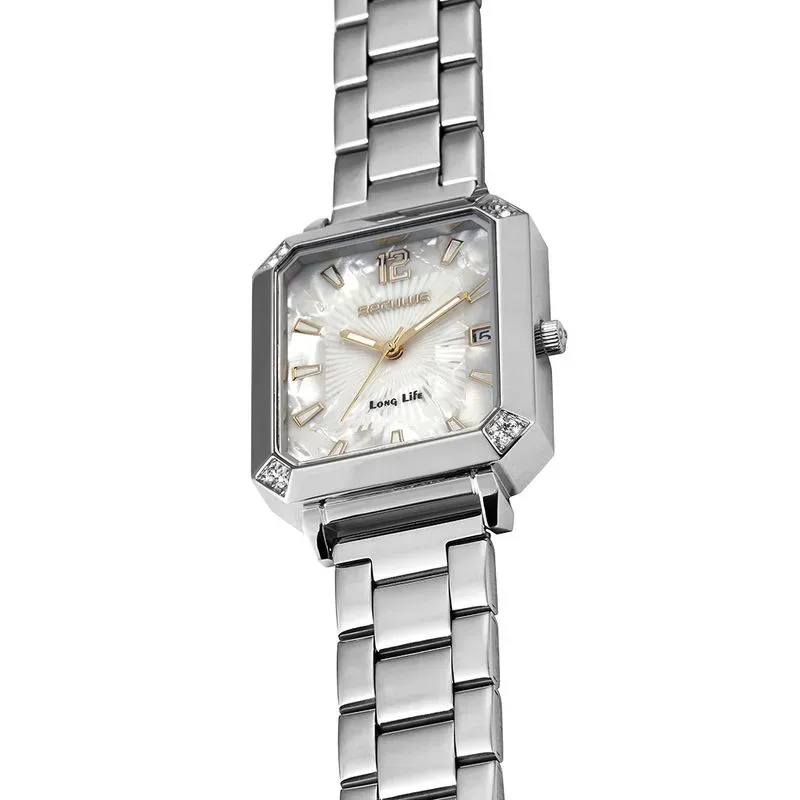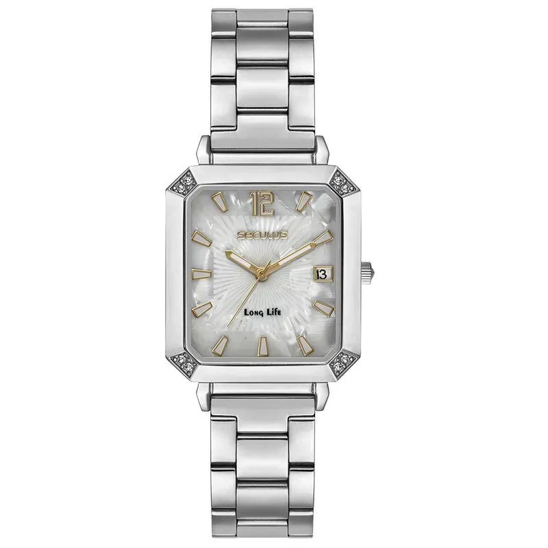 | Composição | Caixa metálica, visor em vidro mineral, pulseira em aço inoxidável |