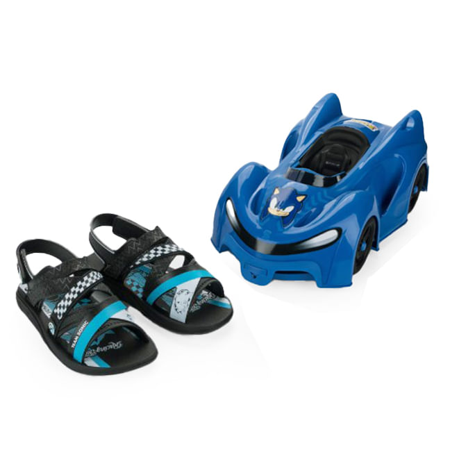 | Cabedal | Tiras transpassadas com estampas do Sonic |