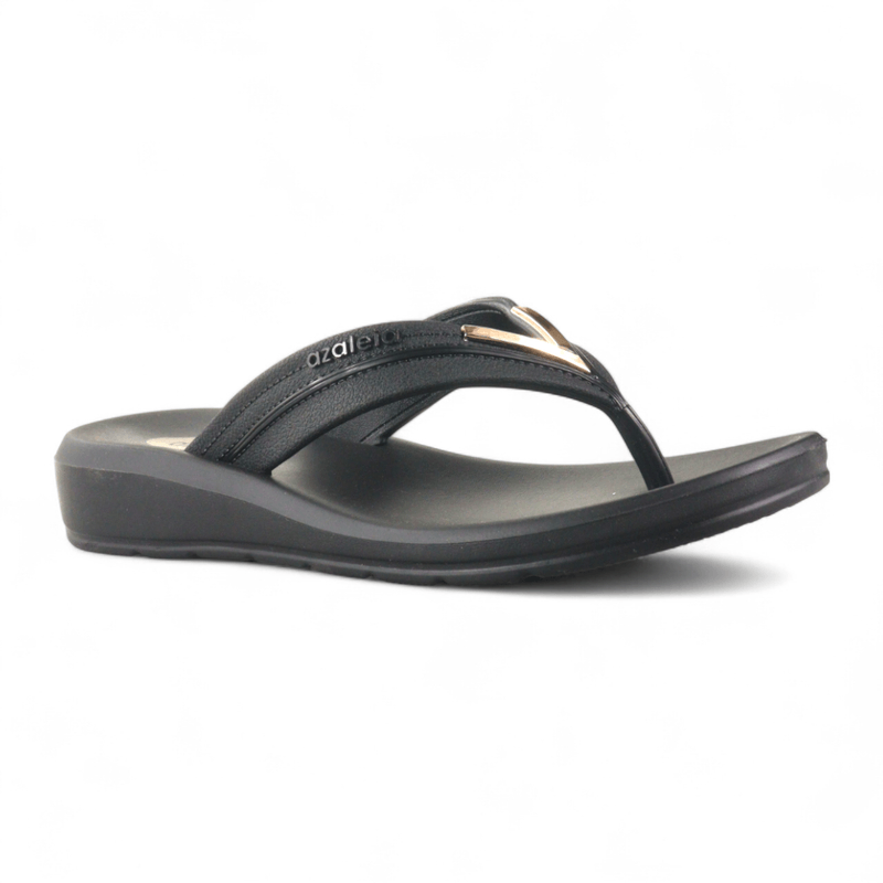 | Cabedal | Tiras largas com detalhe metálico |