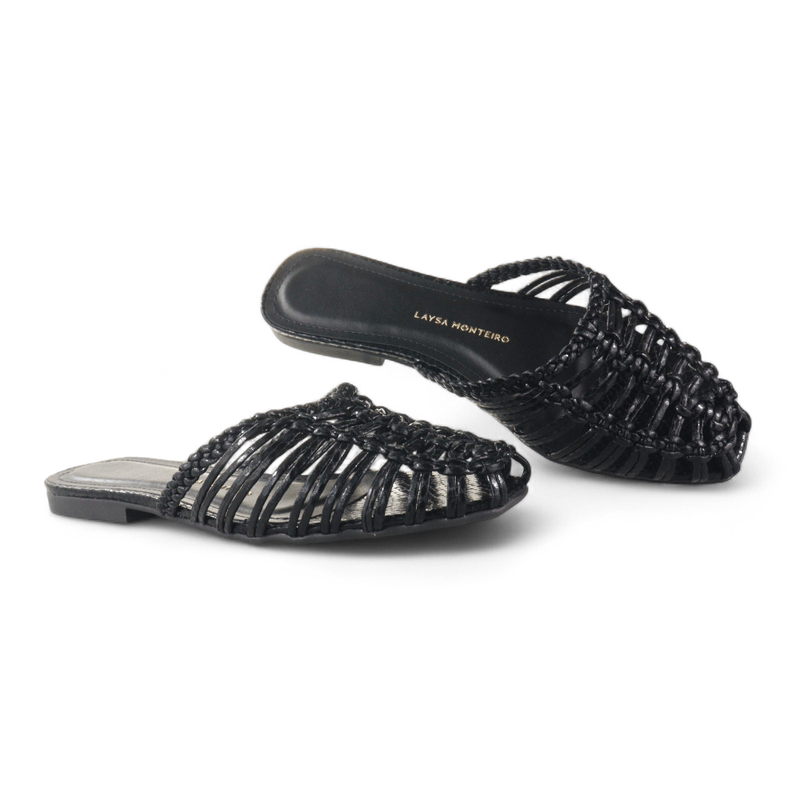 | Cabedal | Tiras trançadas com adorno central de contas |