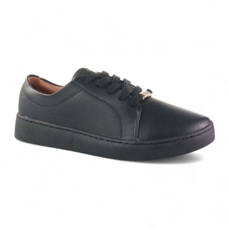 | Cabedal | Liso com costuras aparentes e detalhe metálico |